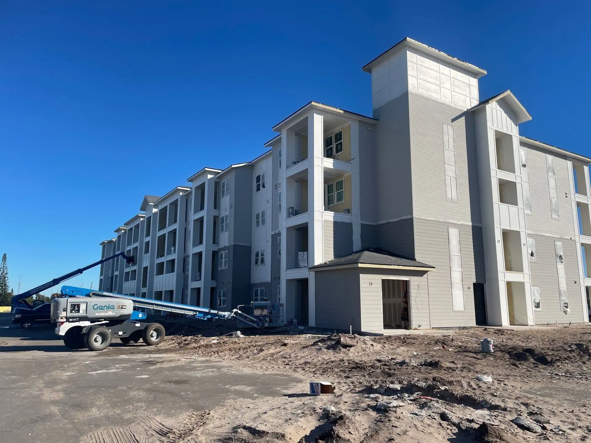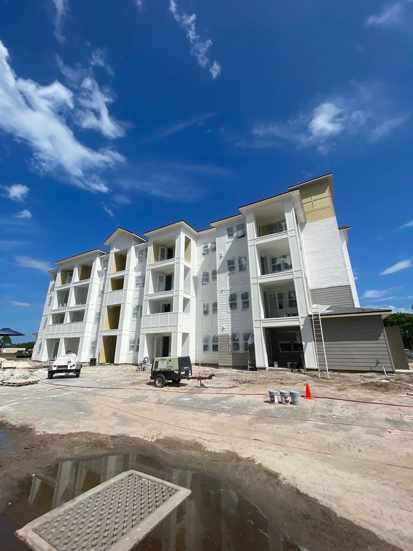 Bright Side Painting of Jax partnered with Bradley Construction Group on a HUD-financed, large-scale multifamily project featuring 300 apartments across four-story buildings and a central amenity center. Our team provided complete interior and exterior painting for this new construction community in Palm Bay. This project marks our second major multifamily new construction, highlighting our expertise in delivering high-quality finishes across multiple buildings for large residential developments.